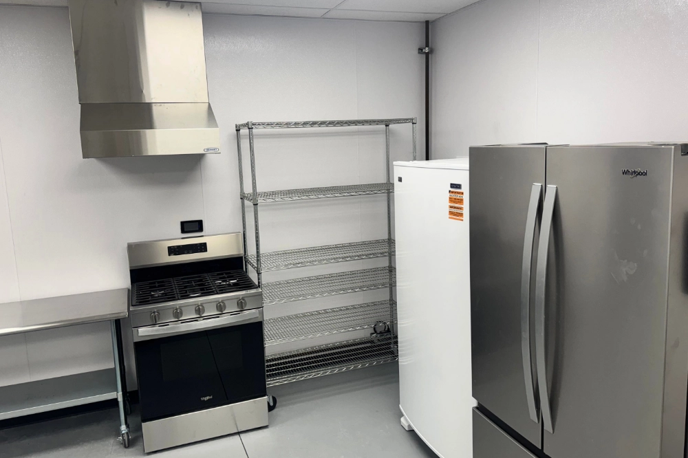 Our fully equipped kitchen is available for small-group use, basic food preparation, training sessions, and program support. Designed for functionality and efficiency, this space is ideal for cooking classes, meal prep, catering support, and community programming.