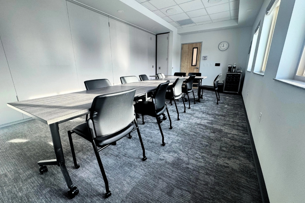 Our versatile conference and training room is designed to adapt to your meeting, training, and presentation needs. The space can be divided into two separate rooms or combined into one larger room, making it ideal for workshops, team meetings, trainings, telehealth services, and professional presentations.